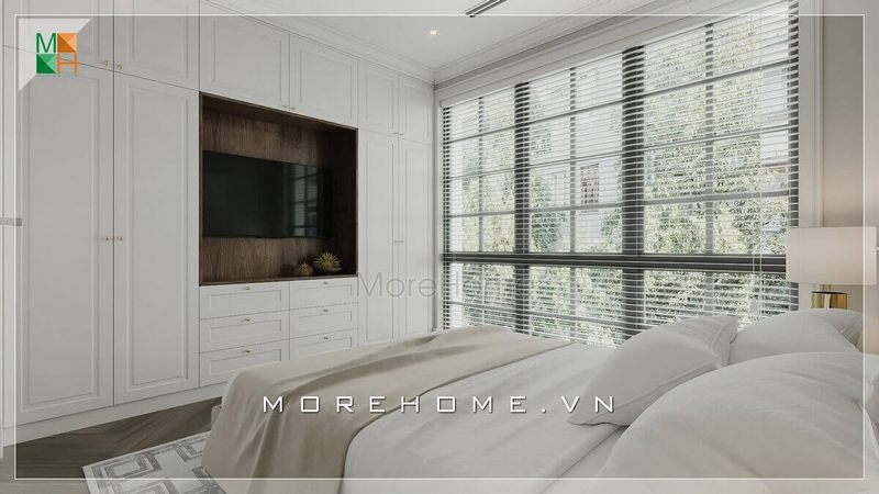 Tủ quần áo kết hợp tủ kệ ti vi hiện đại trong không gian biệt thự, nhà phố độc đáo sáng tạo vừa sang trọng lại tiện lợi, gọn gàng