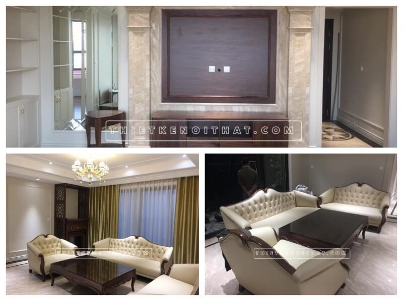 Thi công nội thất phòng khách chung cư vinhomes tân cổ điển tại Nguyễn Chí Thanh quận Đống Đa, Hà Nội