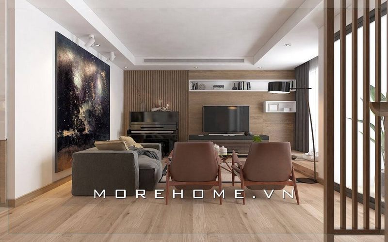 Thiết kế nội thất phong cách Nhật bản đẹp, sang trọng cho phòng khách căn hộ chung cư