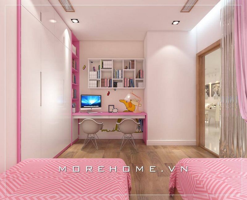 Thiết kế phòng ngủ bé gái đẹp theo tông màu hồng tạo cảm giác dễ thương và nổi bật cho cả căn phòng.