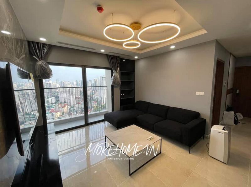 Kiến trúc sư đã thiết kế nội thất phòng khách chung cư hiện đại, trẻ trung với tone màu vàng kem để tạo nên sự ấn tượng và sang trọng.