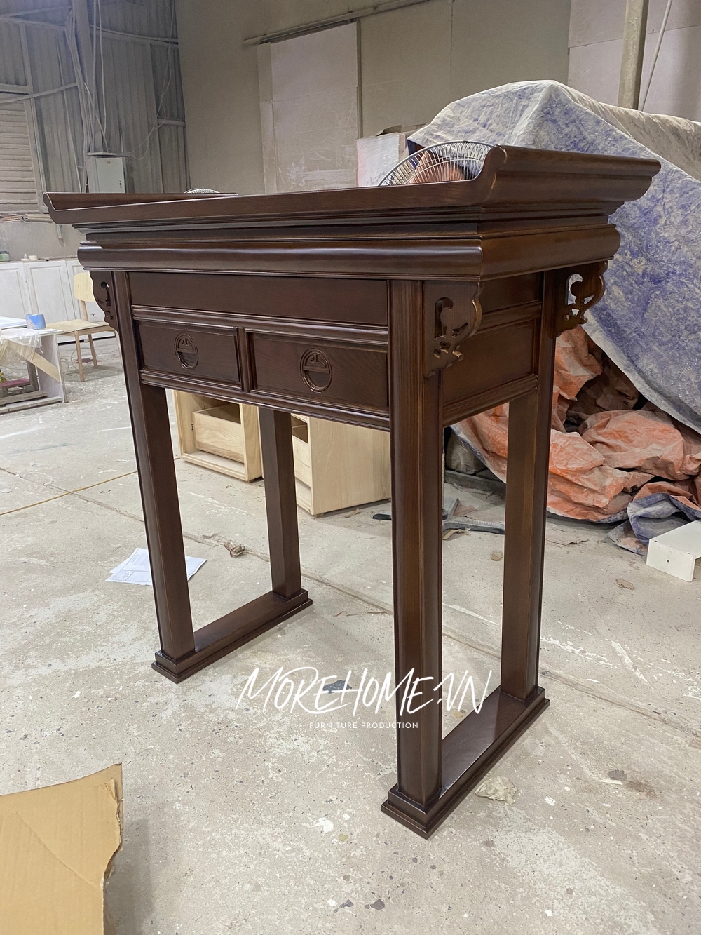 Thi công bàn thờ gỗ tự nhiên các chi tiết đường nét được làm tỉ mỉ mang ý nghĩa phong thủy và giá trị truyền thống bản sắc của người về cội nguồn, tổ tiên