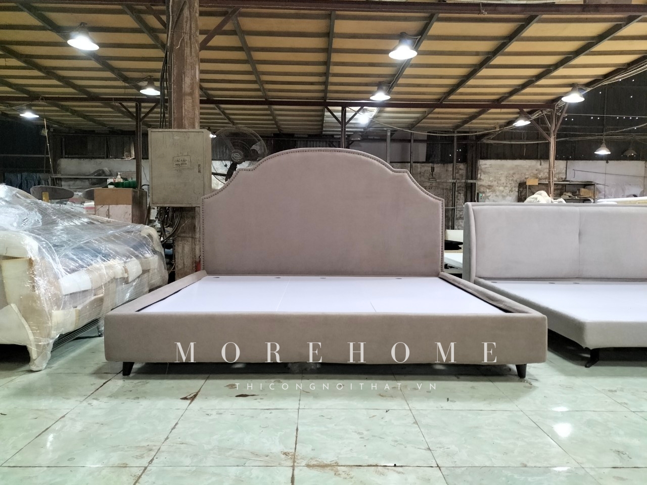 Giường đẹp cho chung cư cao cấp.Khung gỗ dán kết hợp xương gỗ tự nhiên tạo hình .Đệm mút Latex nhập Nhật bọc nỉ Cỏ May Hàn Quốc